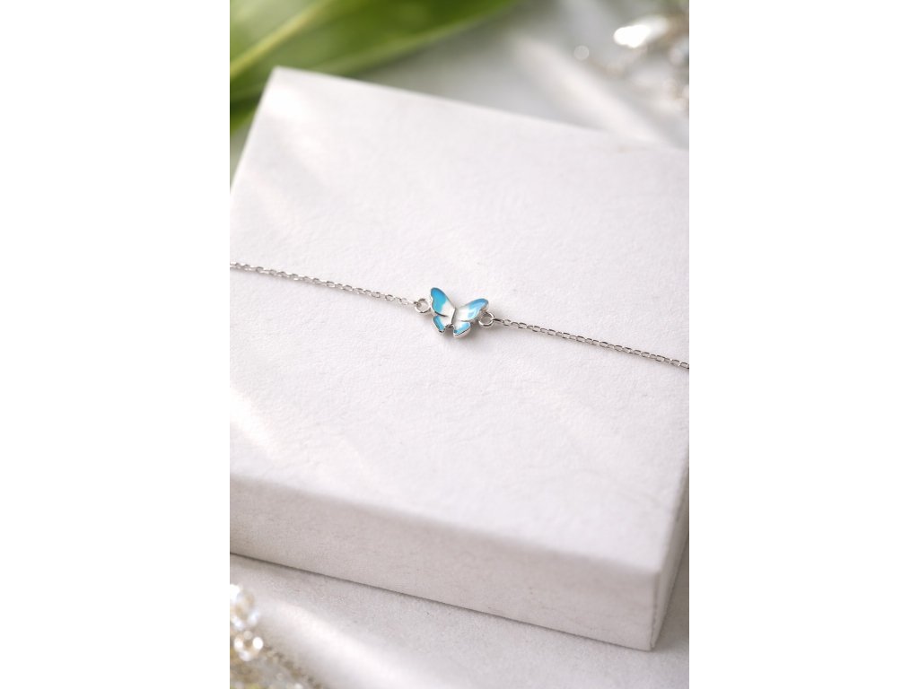 Stříbrný náramek - bílo-modrý motýl MM2033