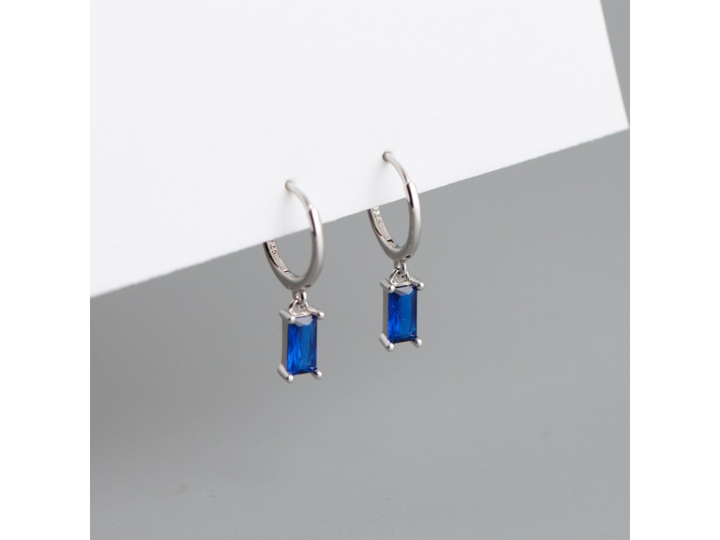Stříbrné náušnice - visící modrý obdélníkový zirkon NF4005