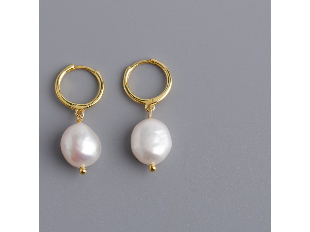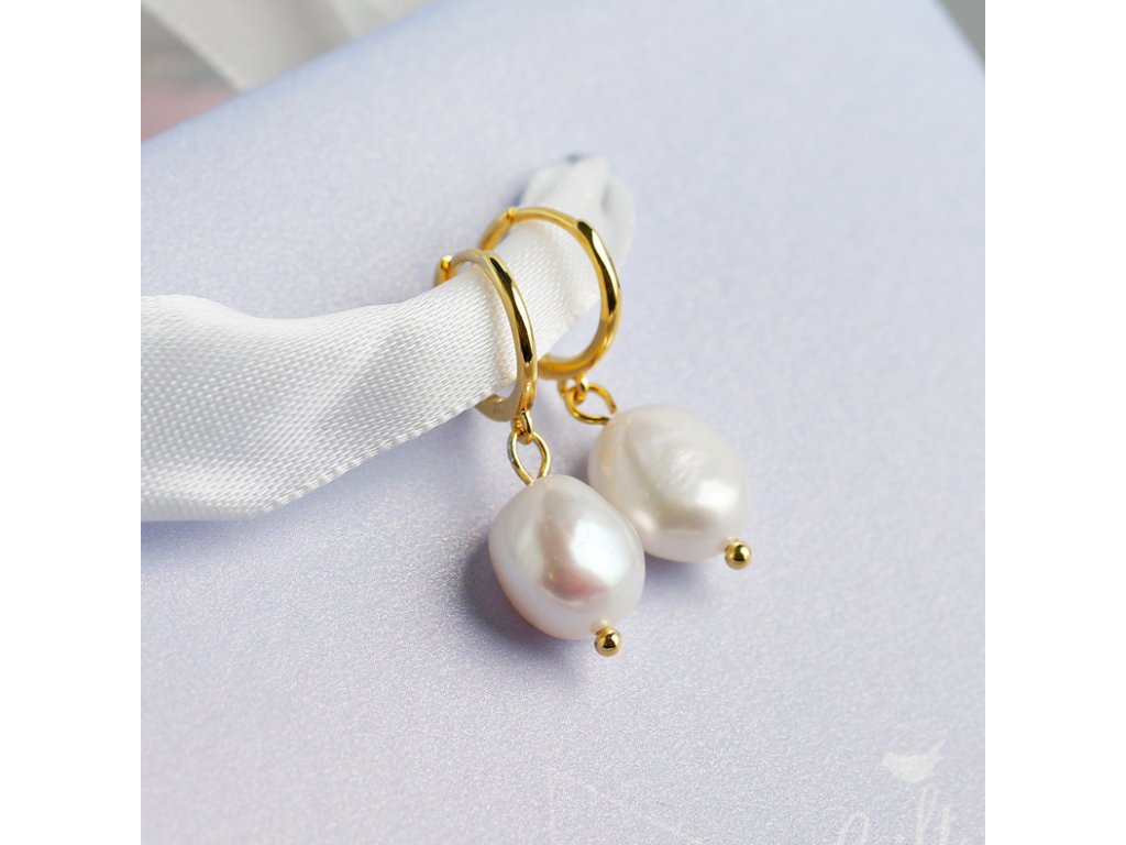 Stříbrné náušnice - pozlacené - kroužky s perlou NF4016