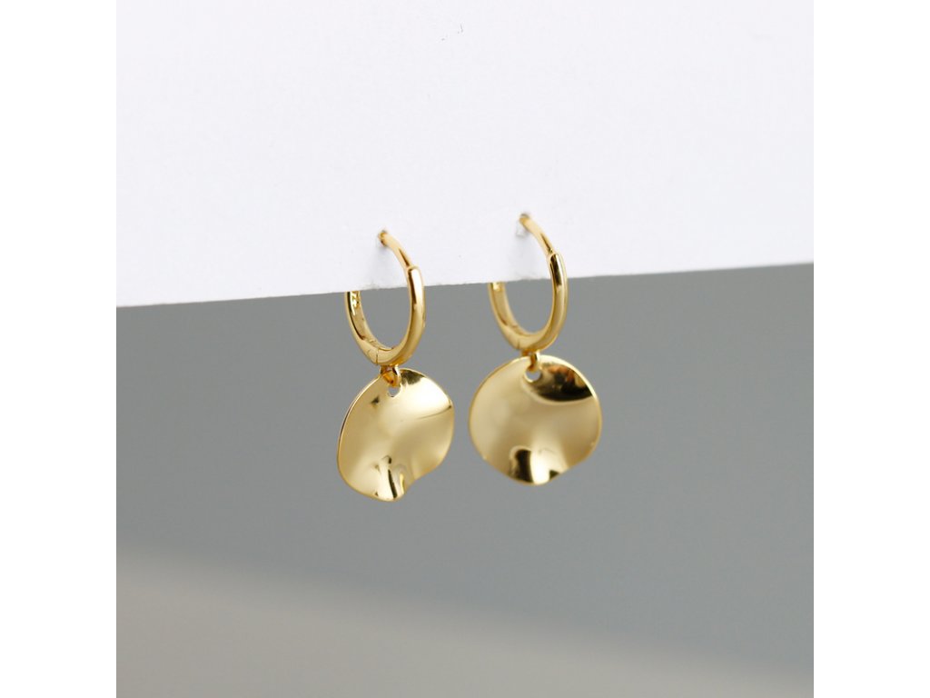 Stříbrné náušnice - pozlacené - moderní kroužky s ploškou NF4018