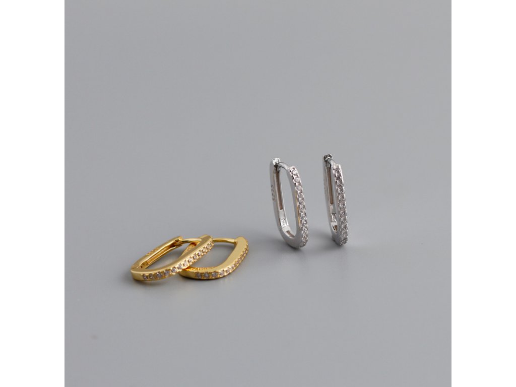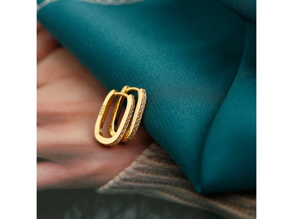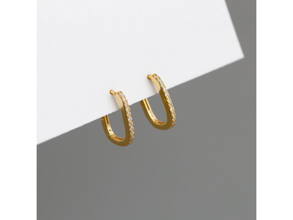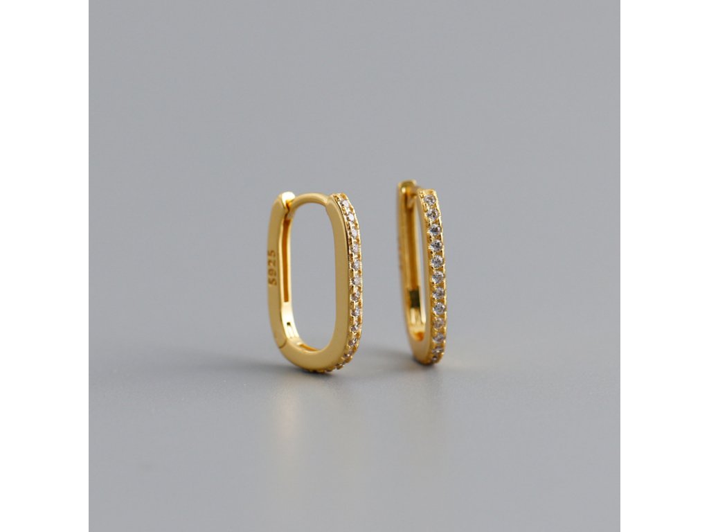 Stříbrné náušnice - pozlacené - moderní oválné se zirkony NF8004