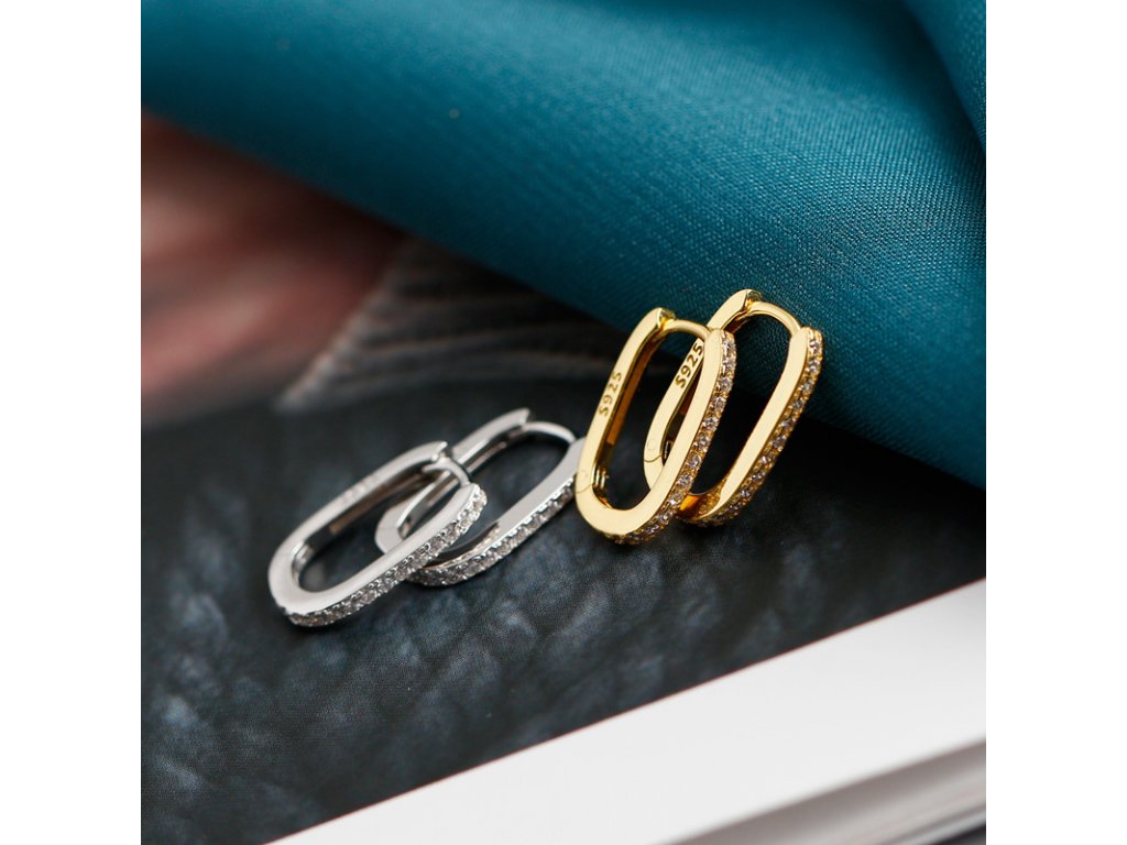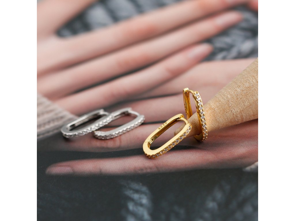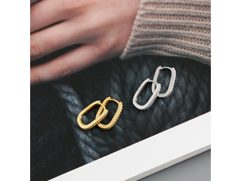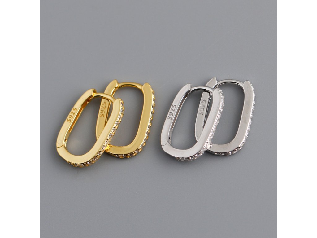 Stříbrné náušnice - pozlacené - moderní oválné se zirkony NF8004