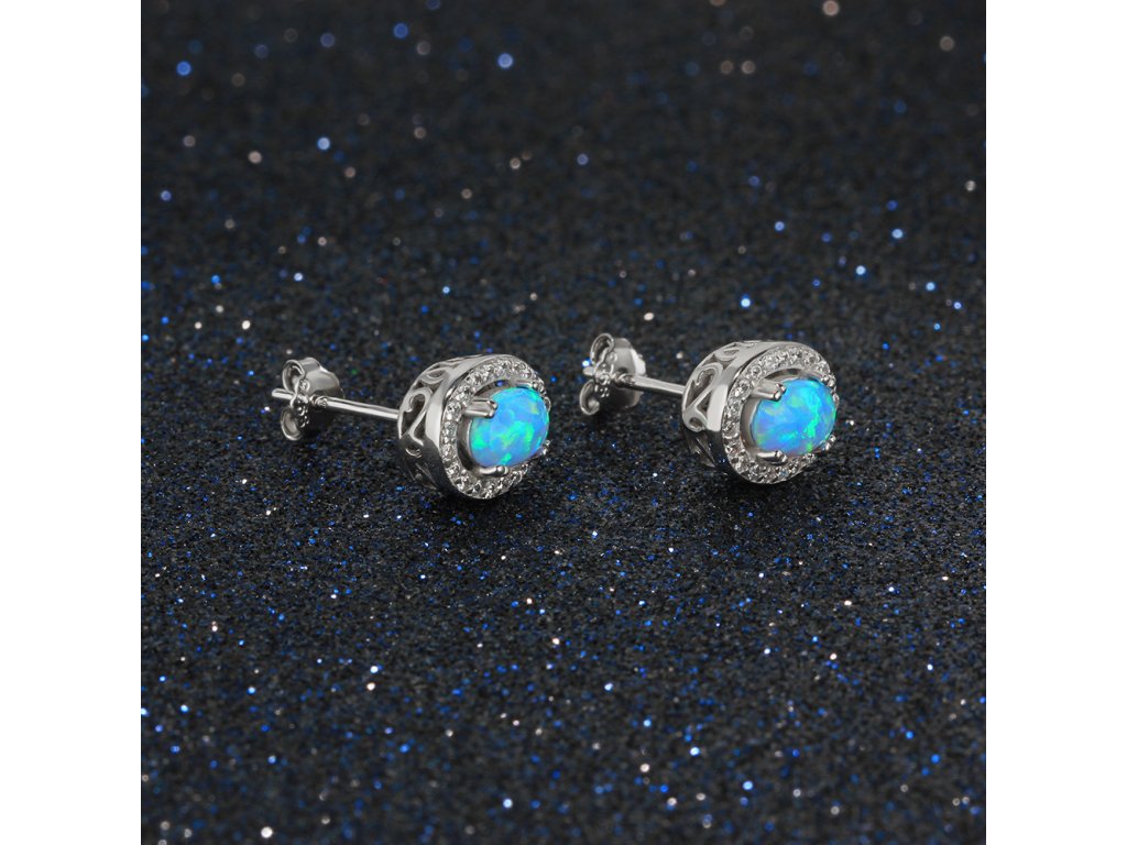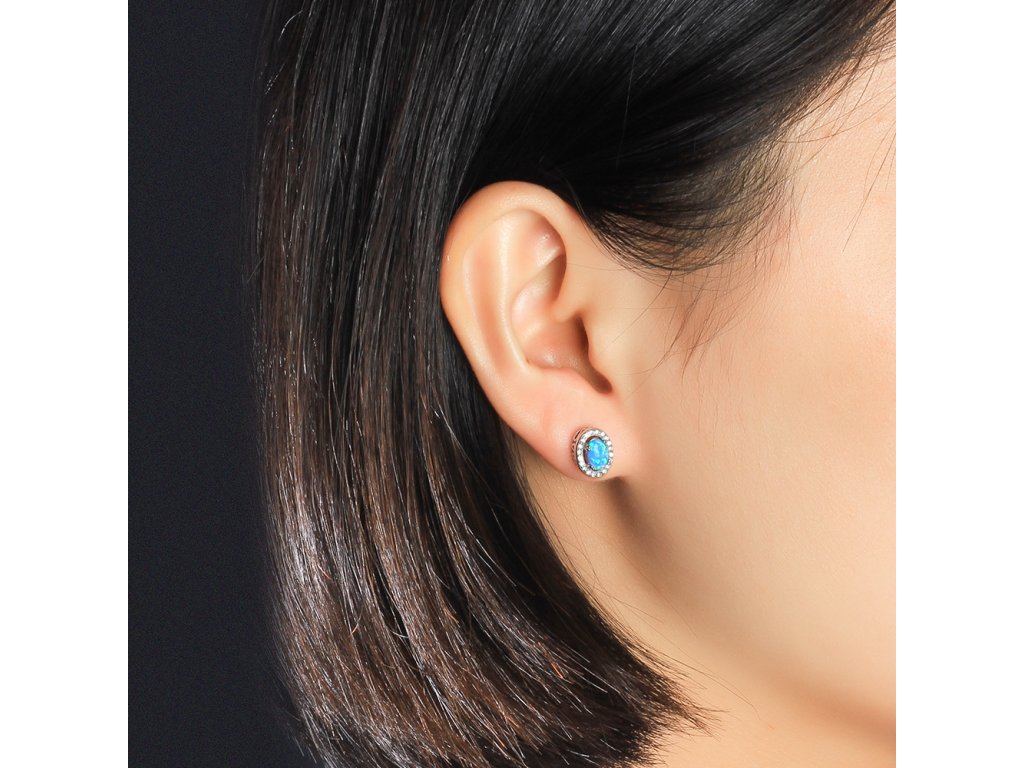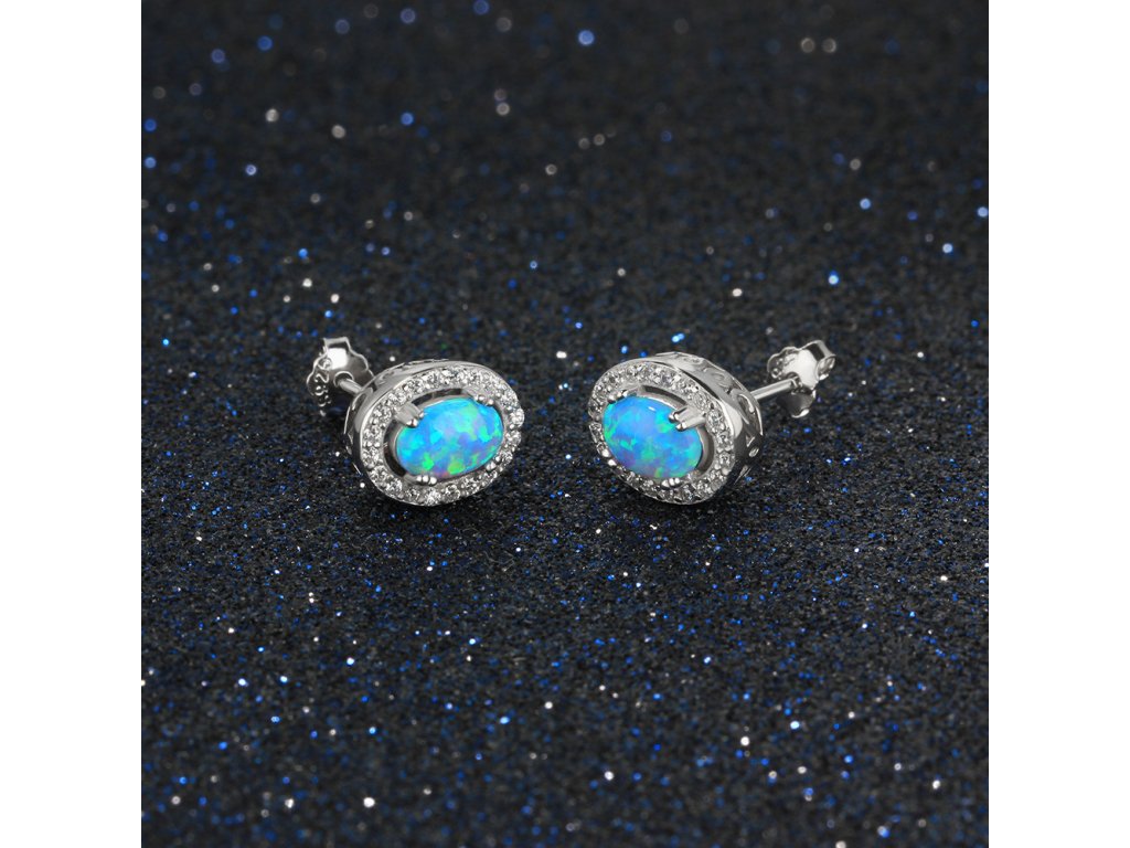 Stířbrné náušnice - modrý opál NT2001