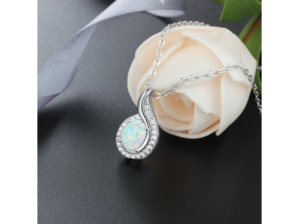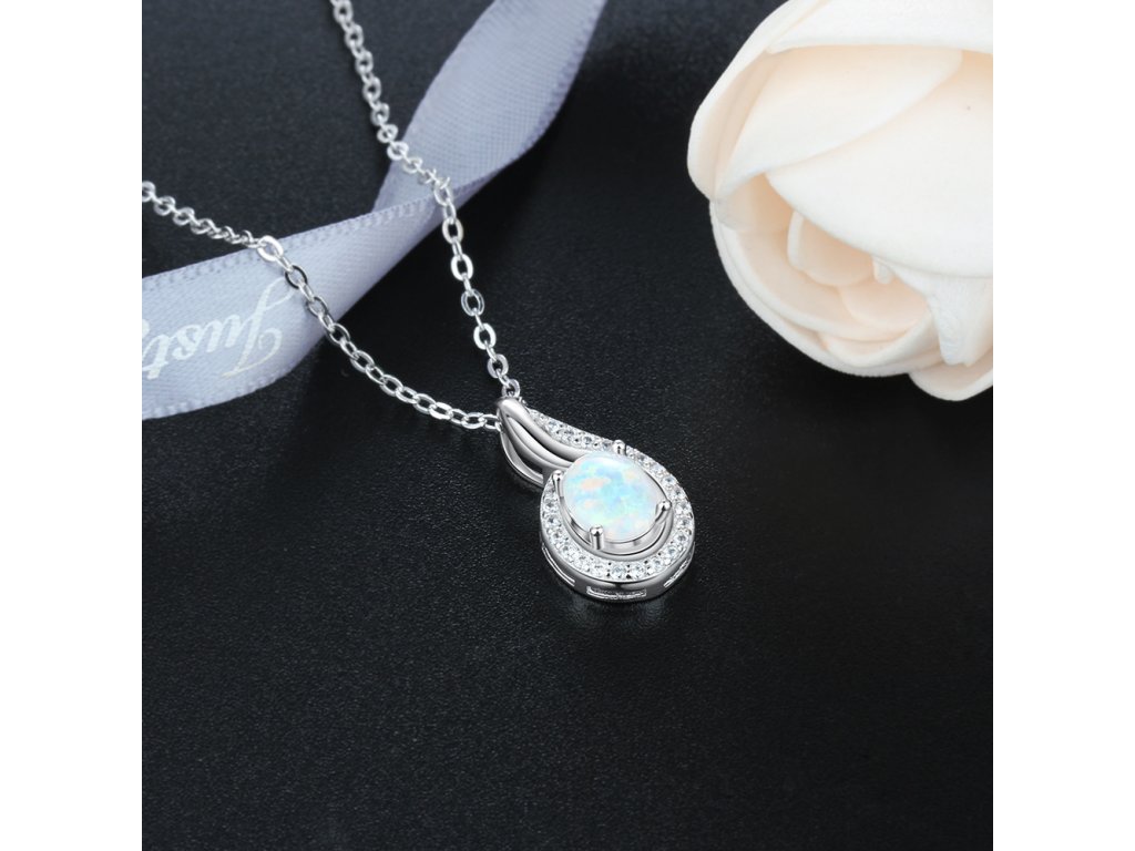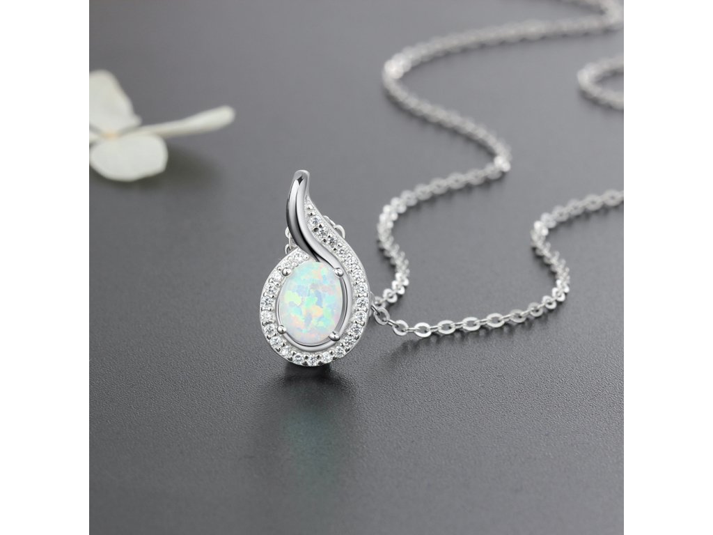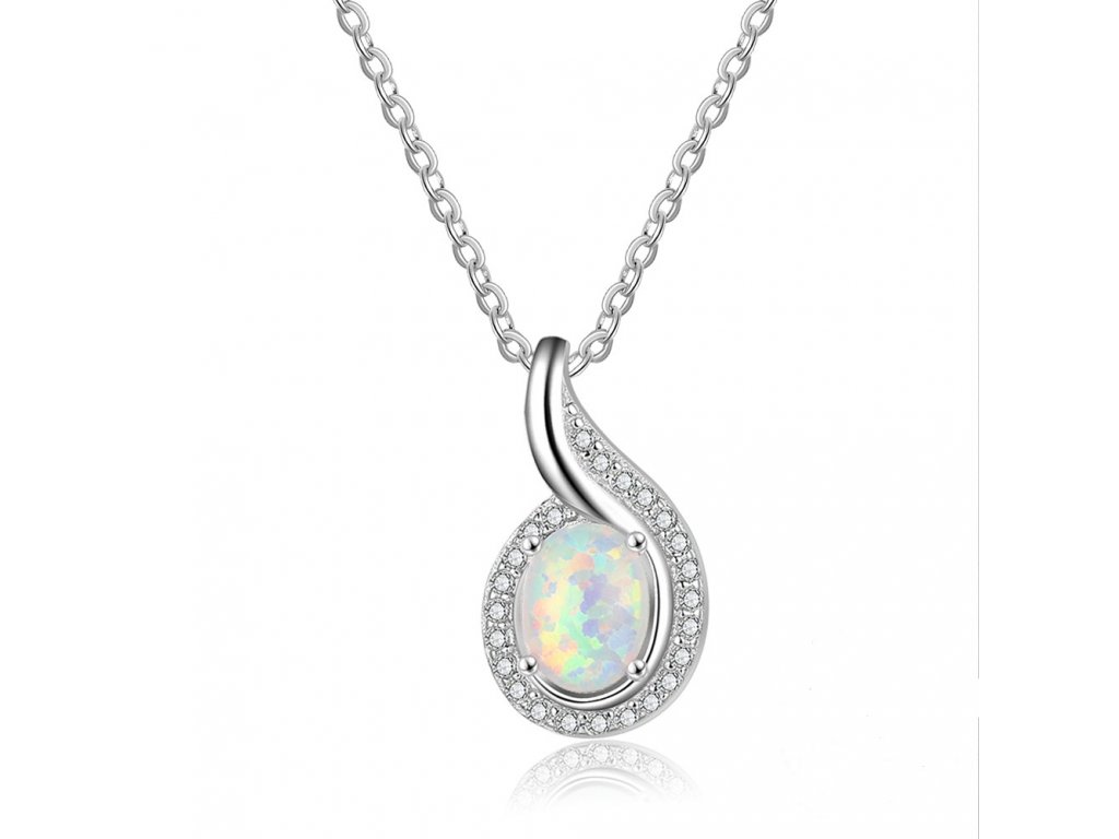 Stříbrný náhrdelník - kapka bílý opál RT2009