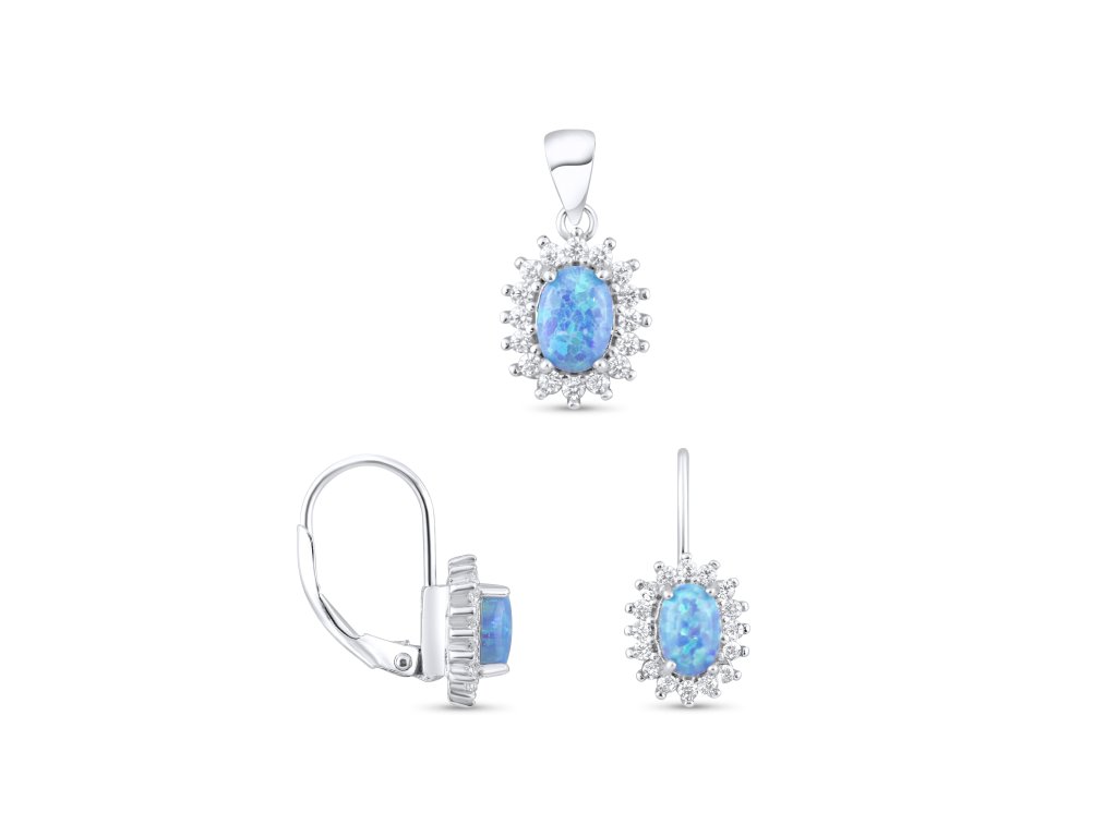 Stříbrná souprava - modrý opál SM1021